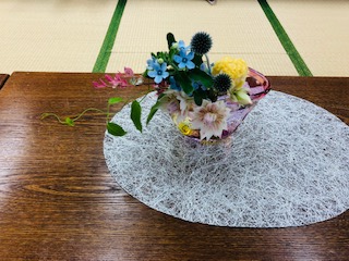 私を含め、皆が元気に集まり、花を生けながら微笑む、この光景は若い頃は何も考えずに流れて行く時のひと幕でしかありませんでしたが、色々起るこの時代にあっては当たり前であって、当たり前でない、一人ひとりの努力無しには実現しない貴重な一瞬のような気がします。