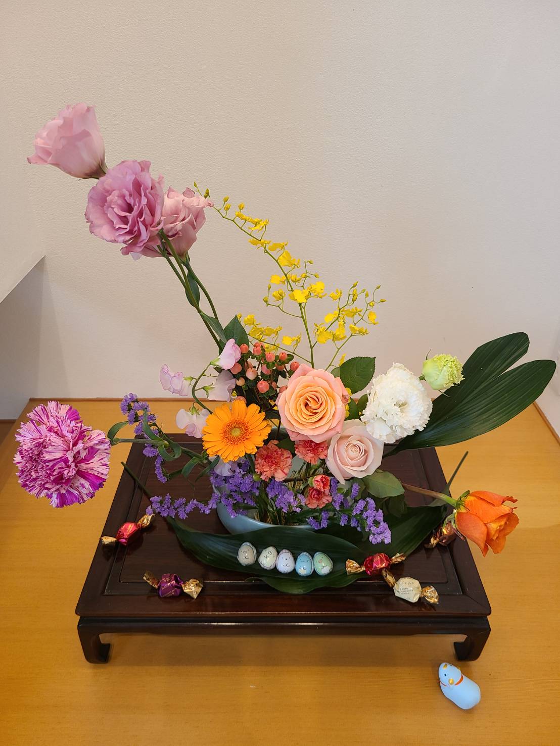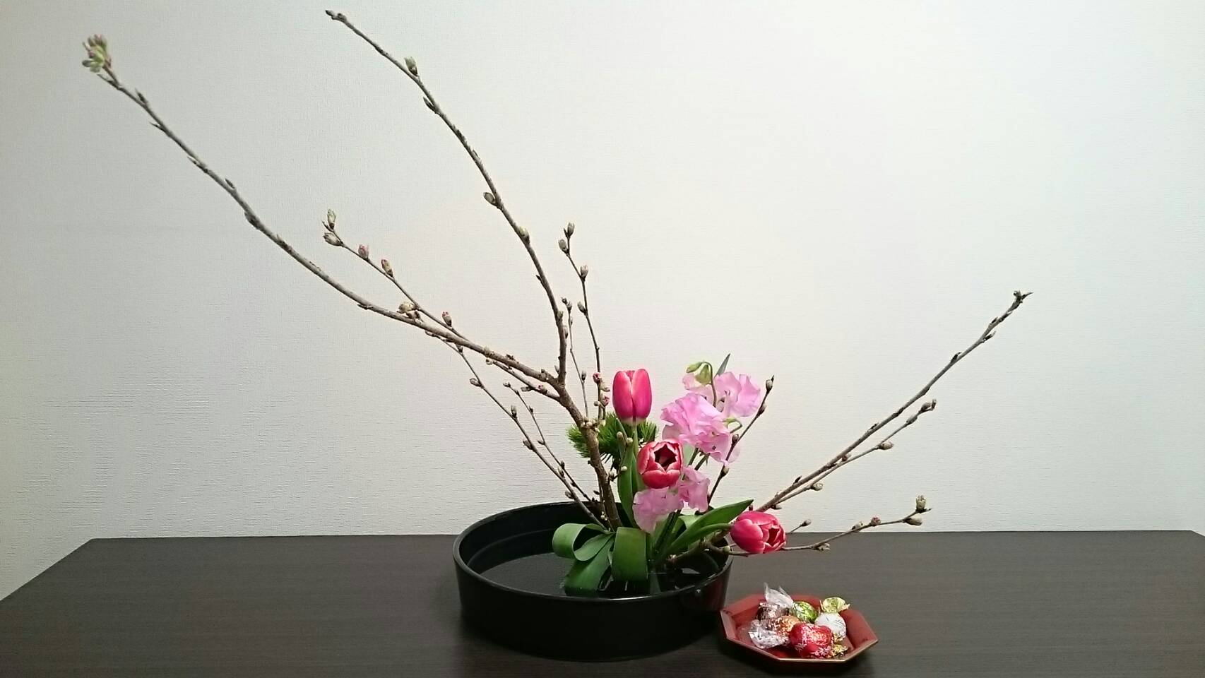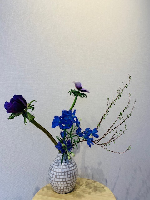 春爛漫。楽しいリモートお稽古が続いています。テーマは「花ものをいける」又は「バレンタイン花をいける」又は「自由」です。どのクラスもみなさん素直な気持ちで花をいけていて、画面ごしにも花がかおるようです。